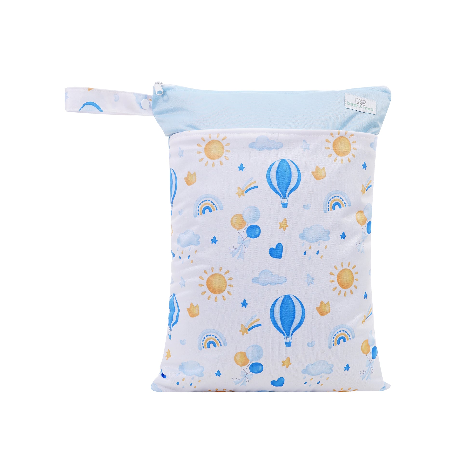 - Bear & Moo Large Wet Bags have a double zipper with two pockets to allow one pocket for dry items and one for wet