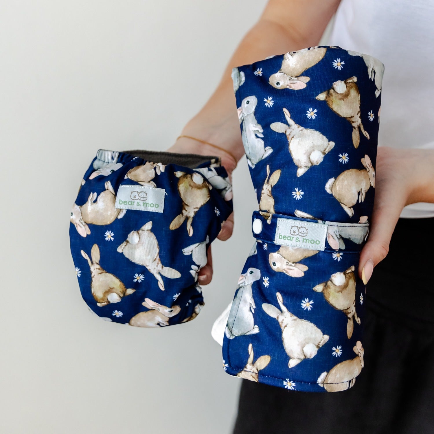 Our reusable cloth nappies are brought to you by us! After starting her family, Hannah wanted to reduce their impact on the environment, as well as reduce expenses by moving to cloth nappies. Moving to reusables can be a daunting task and so the aim at Bear & Moo is to make it as easy as possible.