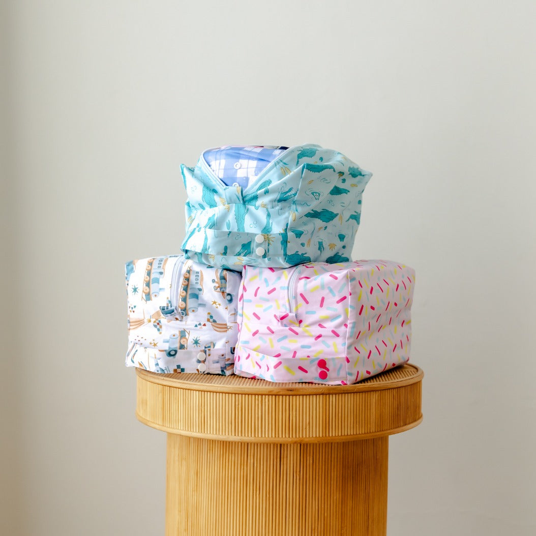 They are great for out and about as well as for storage; use them to send nappies to daycare or to pack clothes in for travel, sports days, camping, they aren't just for nappies!