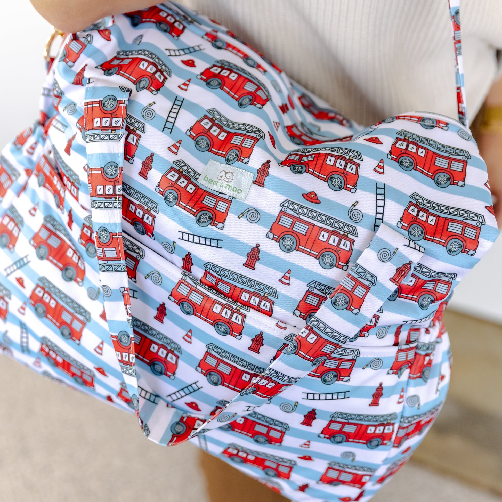 The Bear & Moo Day Bag is here to help you pack your clothes, nappies, togs, lunch, life, with ease and full on reckless abandon.