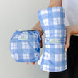 Periwinkle Gingham print is available in our range of reusable products. You can shop the Periwinkle Gingham collection here.