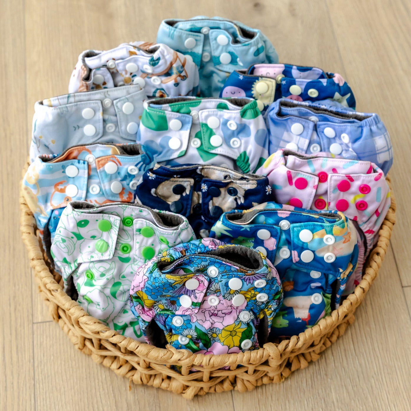 They are designed to get you started on your cloth journey from birth and are a great way to try them at home in conjunction with disposables until you’re ready to make the part time or full time switch to One Size Fits Most nappies.