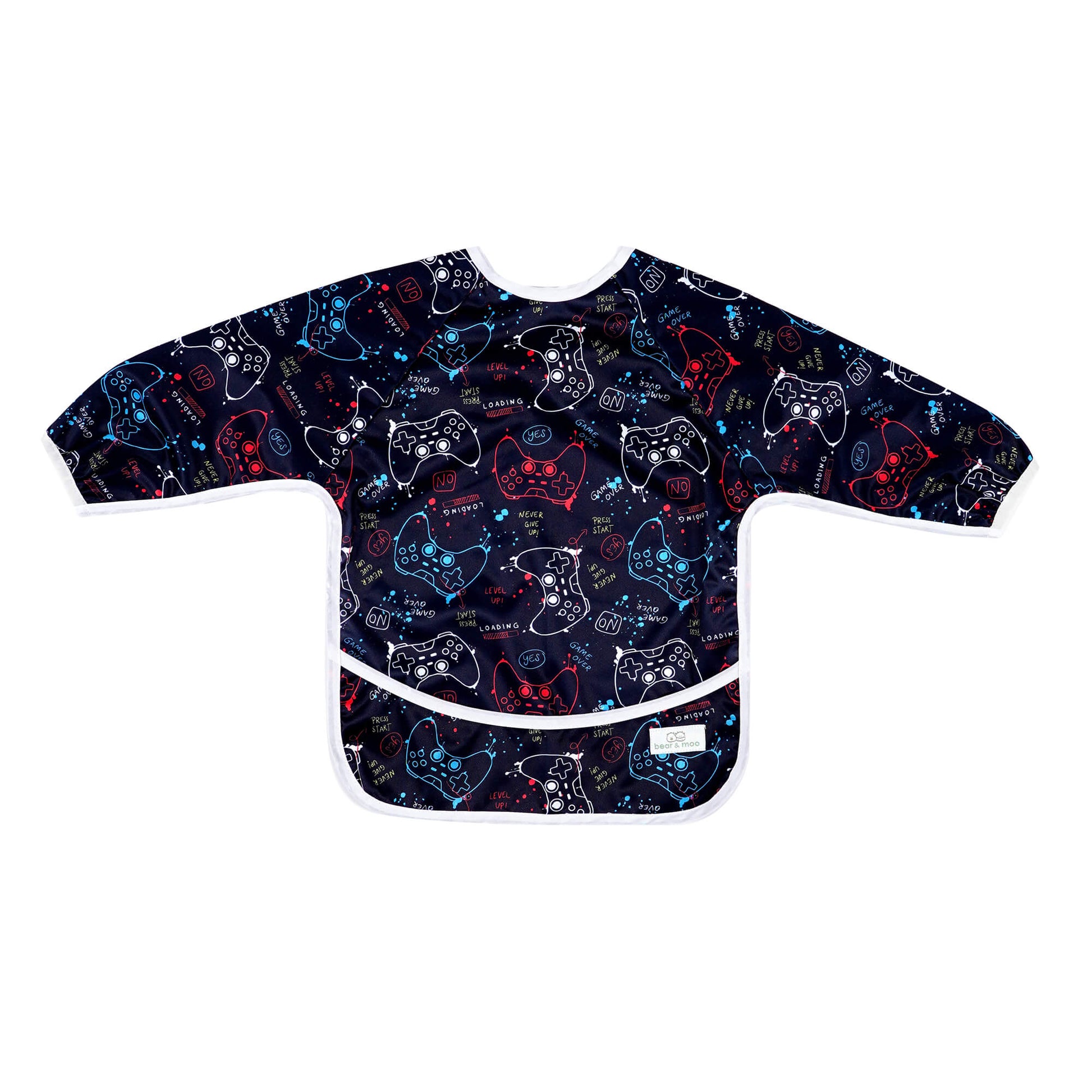 With full length arms and a full-coverage front, keep your little one as clean as possible when eating or playing. Also with a pocket to catch stray pieces of food, wayward bits of crafts or somewhere for them to store their many "treasures".