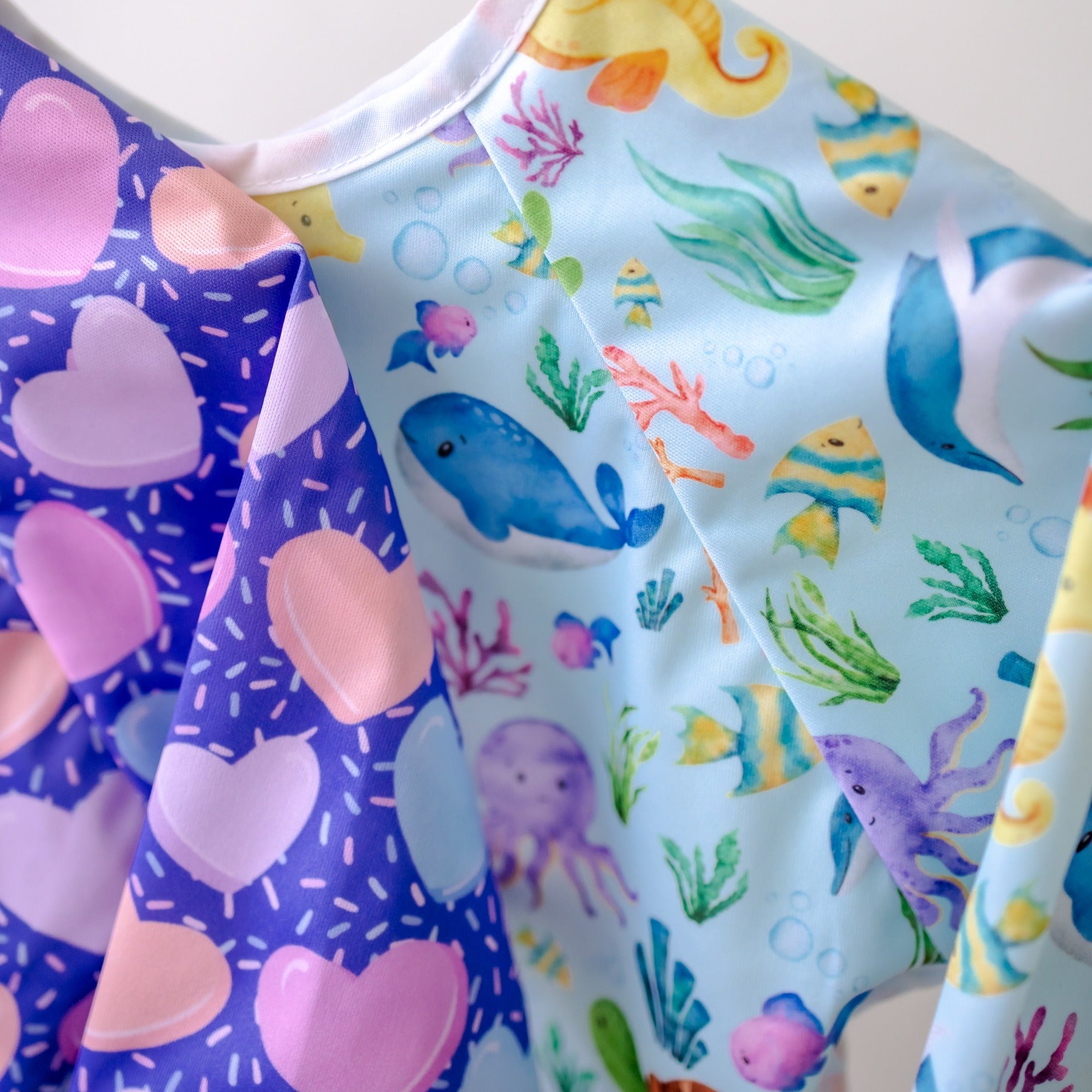 With full length arms and a full-coverage front, keep your little one as clean as possible when eating or playing. Also with a pocket to catch stray pieces of food, wayward bits of crafts or somewhere for them to store their many "treasures".
