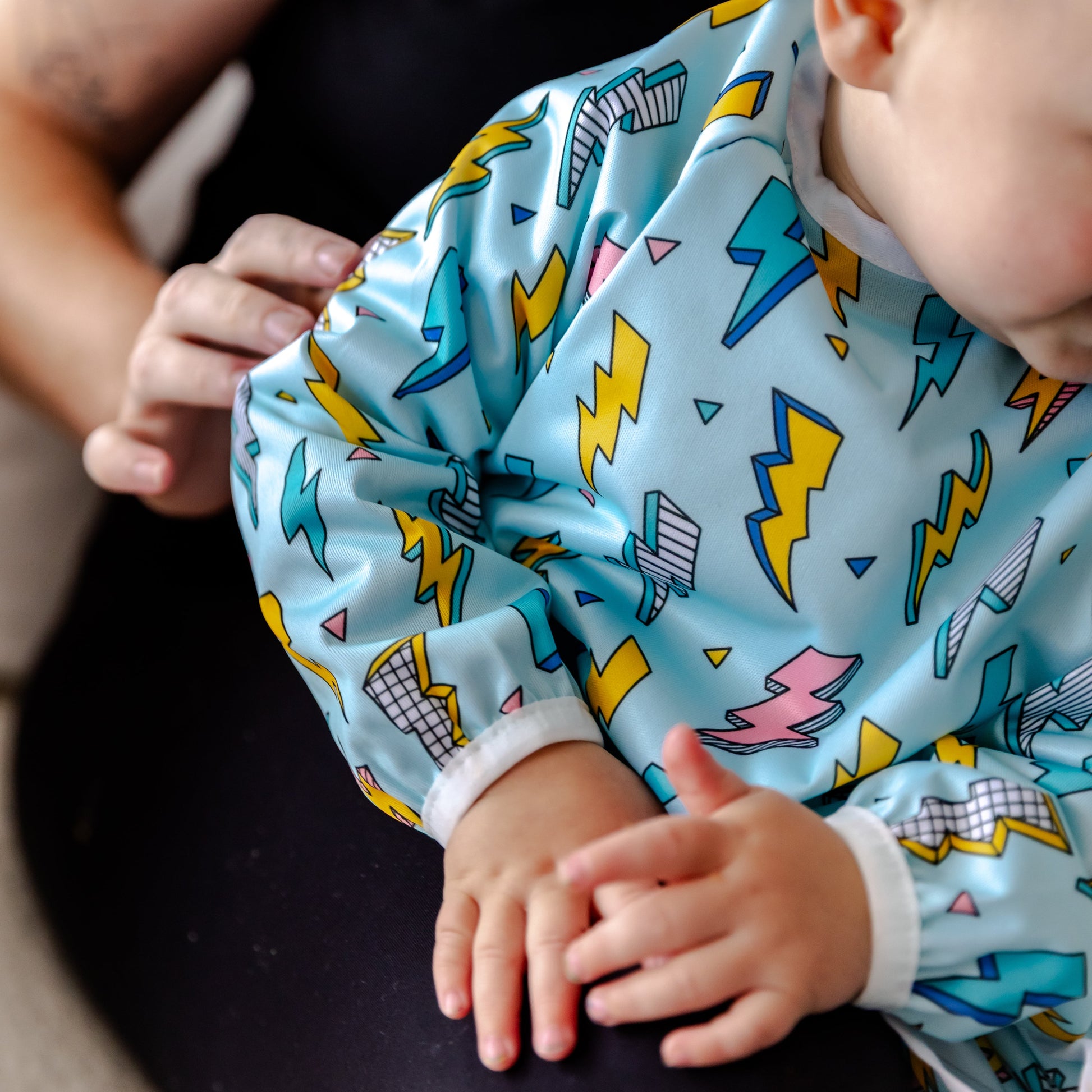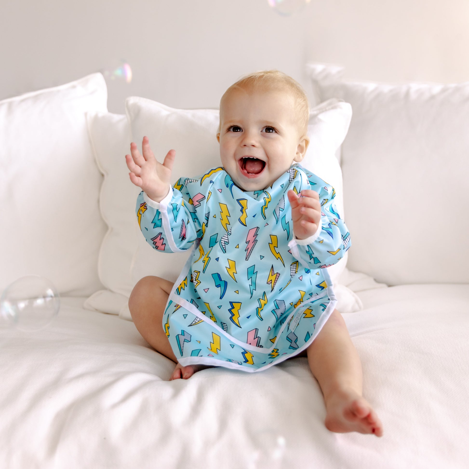 With full length arms and a full-coverage front, keep your little one as clean as possible when eating or playing. Also with a pocket to catch stray pieces of food, wayward bits of crafts or somewhere for them to store their many "treasures".