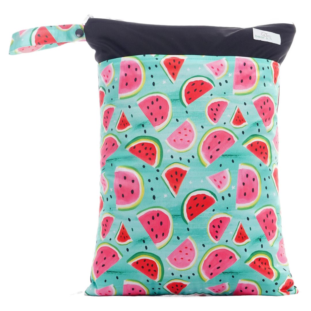 - Bear & Moo Large Wet Bags have a double zipper with two pockets to allow one pocket for dry items and one for wet