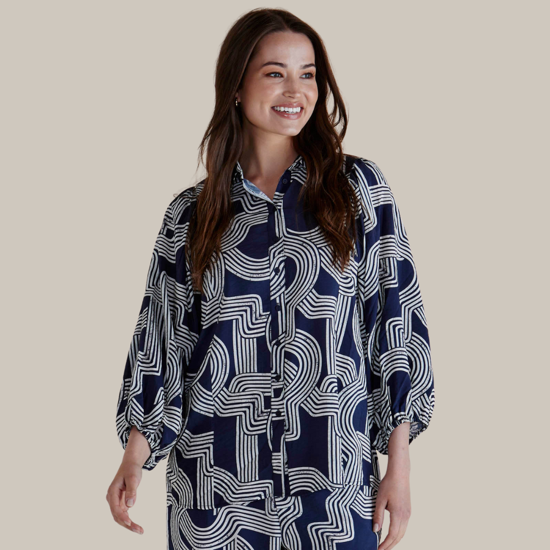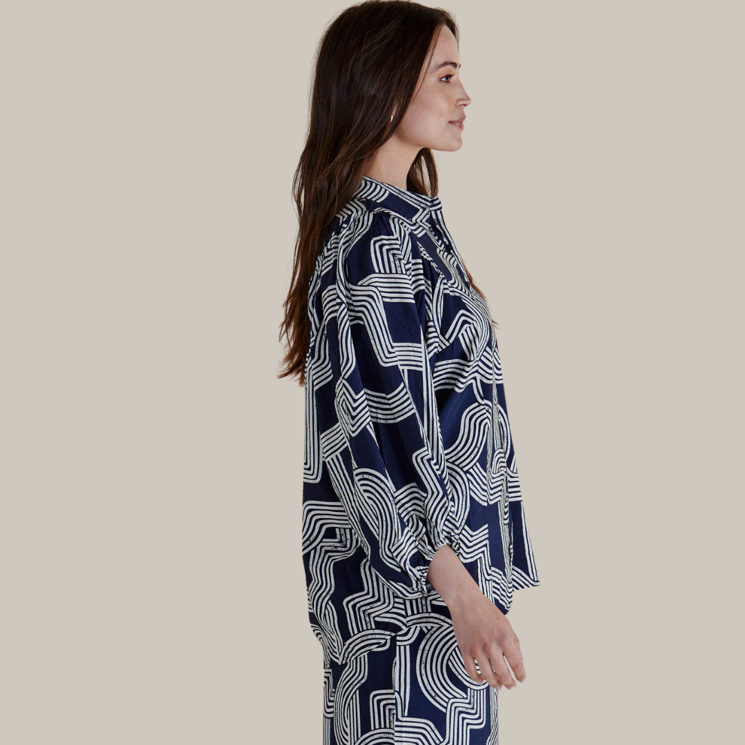 Pair with the Betty Basics Zander Pant in Navy Geo.