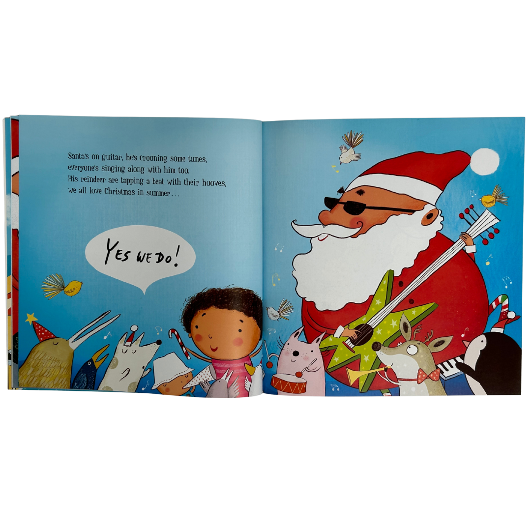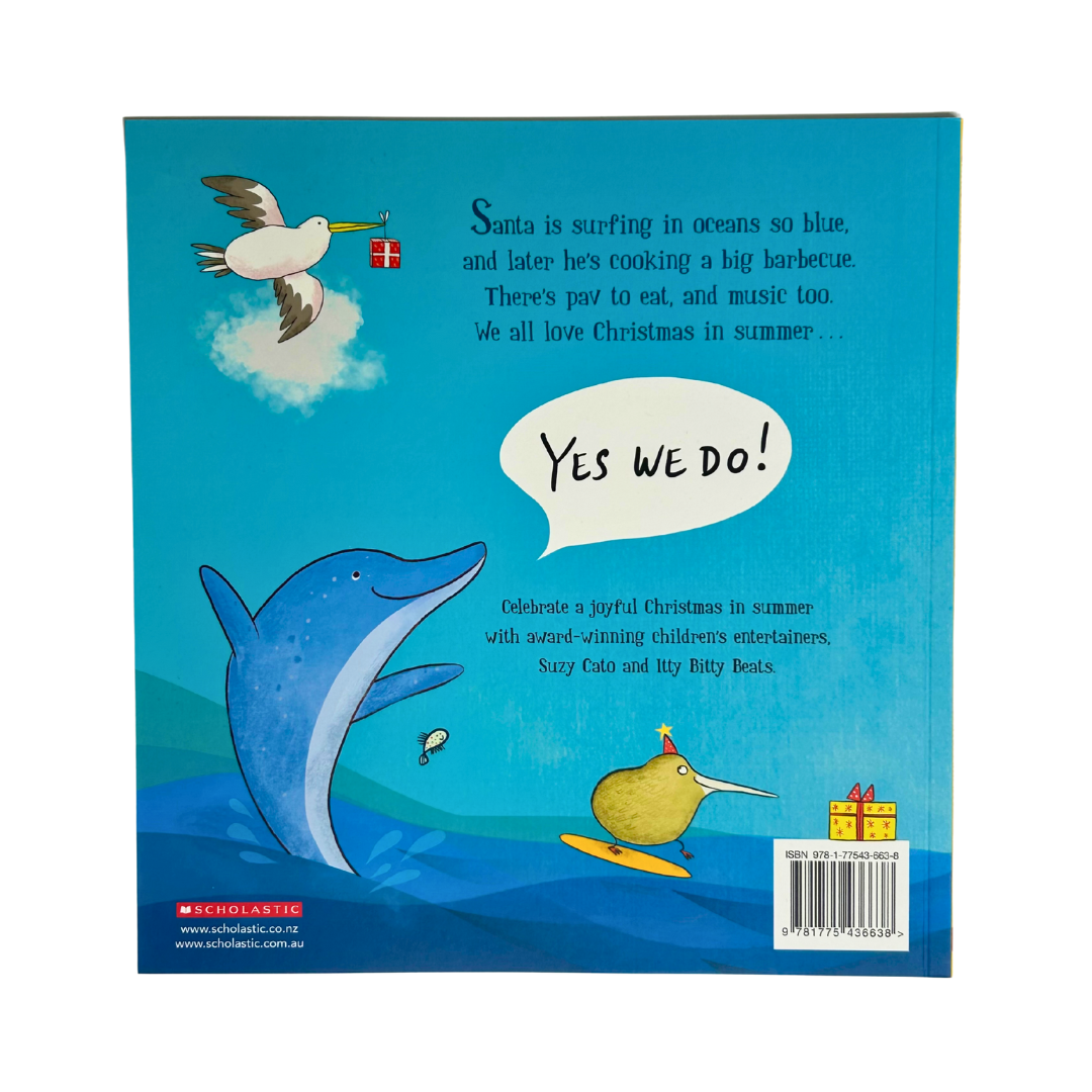 This catchy new song from Suzy Cato and the Itty Bitty Beats is a firm fave in kiwi families. Santa's having a fun day at the beach, surfing and cooking a BBQ for Mrs Claus and the reindeer. Full of quirky illustrations.