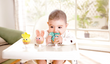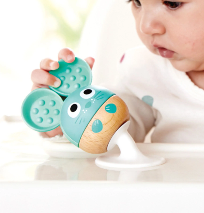 Add an extra layer of fun to your little one’s mealtimes by using the suction cups to stick these furry friends on the table or tray. See if your little one can repeat the order in which you shake each rattle to create a sound.