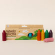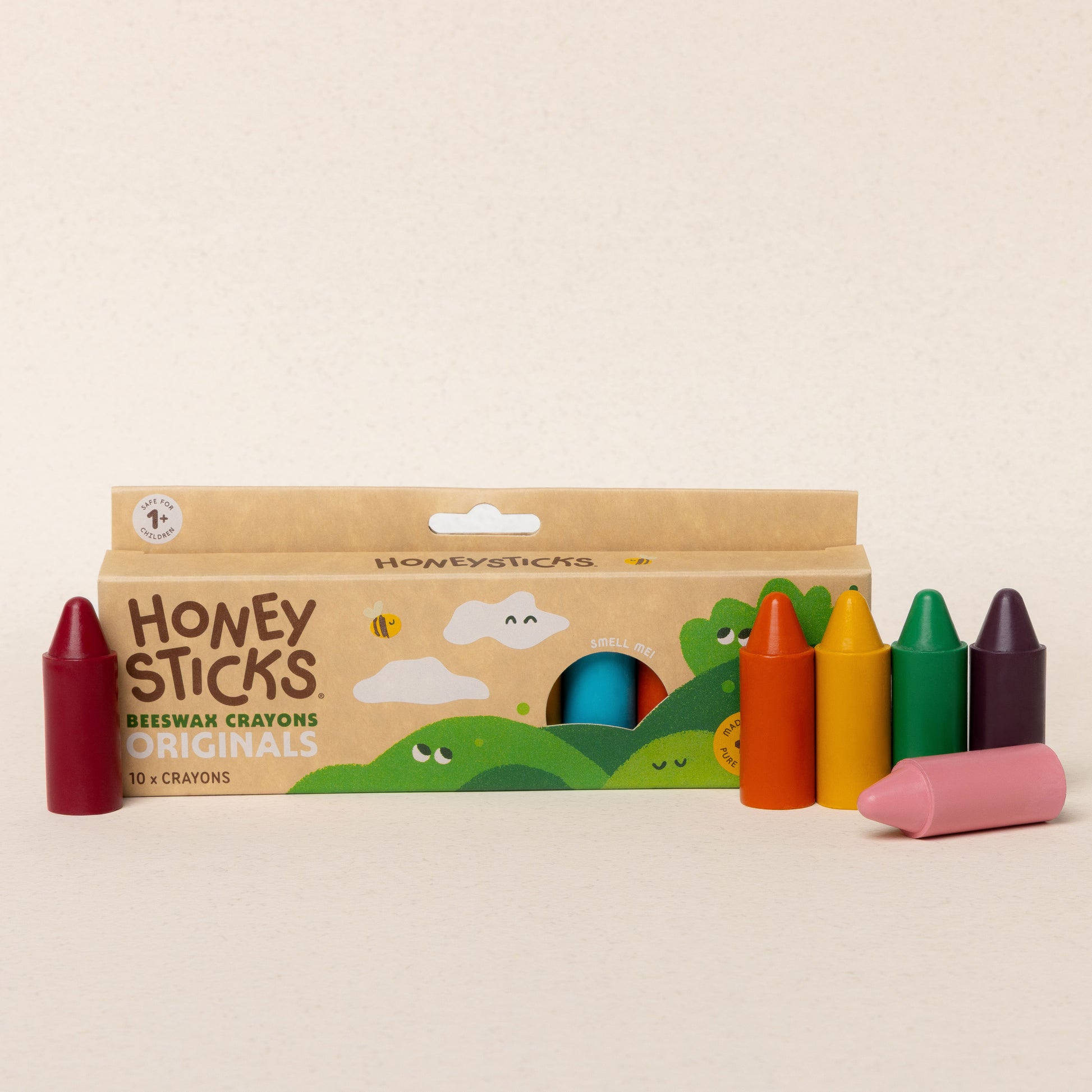 Honeysticks Crayons are handmade in New Zealand with 100% pure beeswax, so they are safe for children of all ages. This sustainable process causes minimal impact on the environment and gives the crayons a wonderful honey scent.