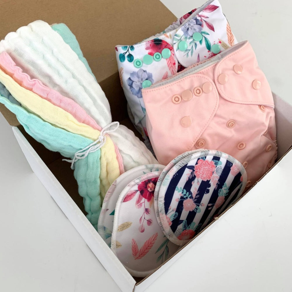 Two Newborn or One Size Fits Most reusable nappies - perfect for introducing your bestie, sibling, colleague (or anyone!) to the eco-friendly world of cloth nappies. Even just using one reusable nappy per day has a positive impact on the environment AND they look super cute.
