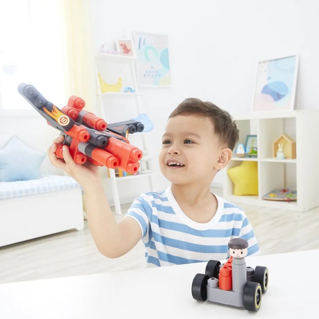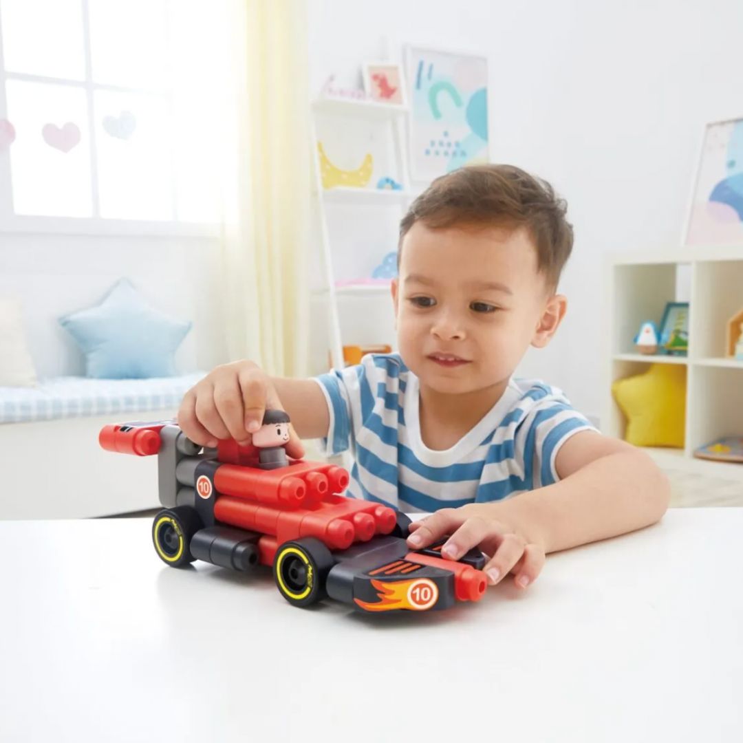 Recombine the blocks to make your own amazing race cars and other vehicles.Ā