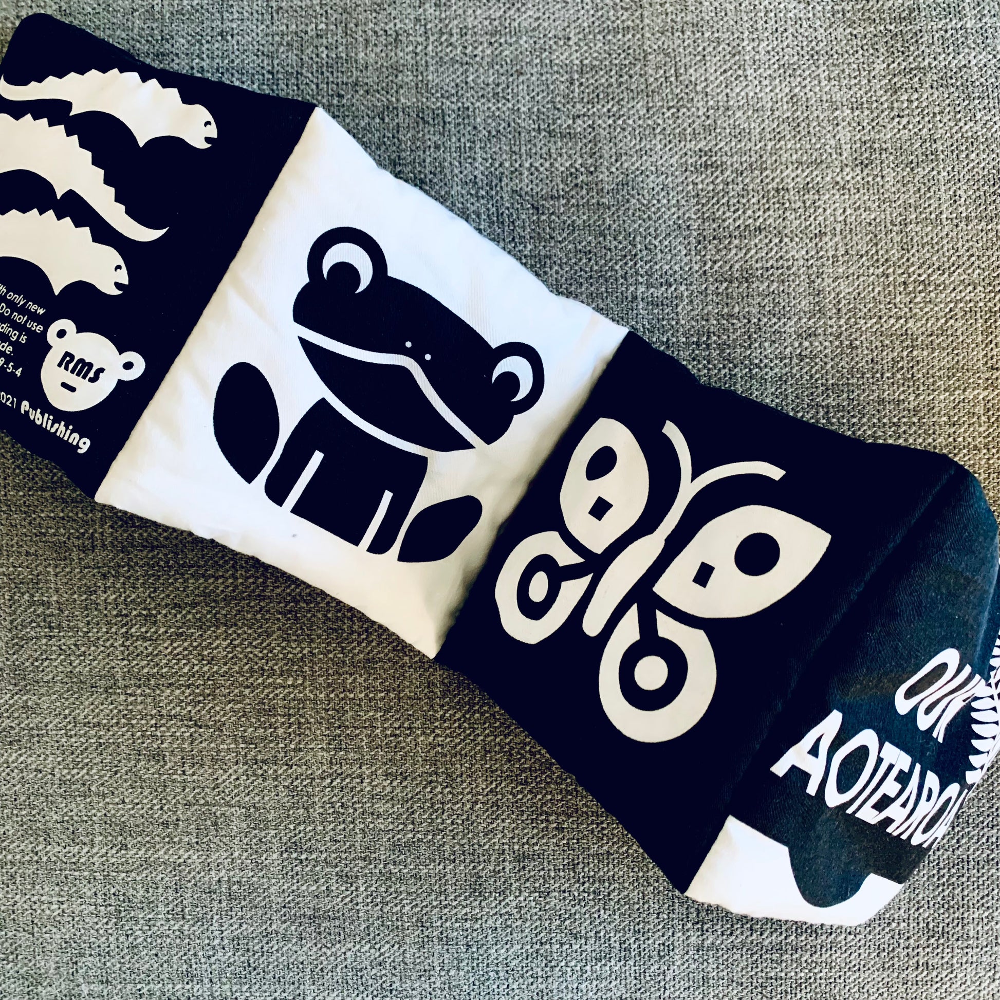 Each book is crafted from 100% natural cotton, with 100% natural corn fibre filling measuring approximately 13cm x 13cm x 4cm when folded, created by RMS Publishing.