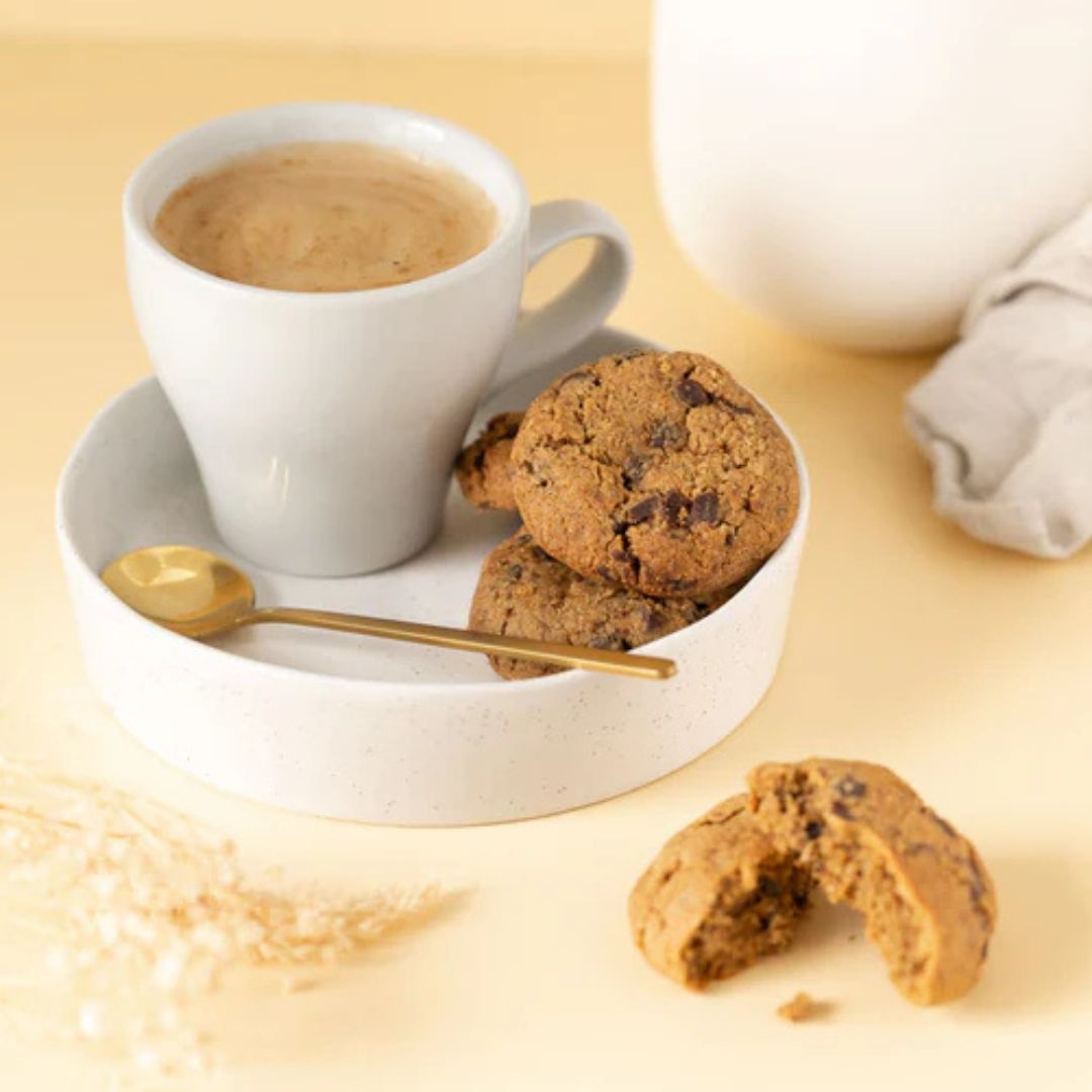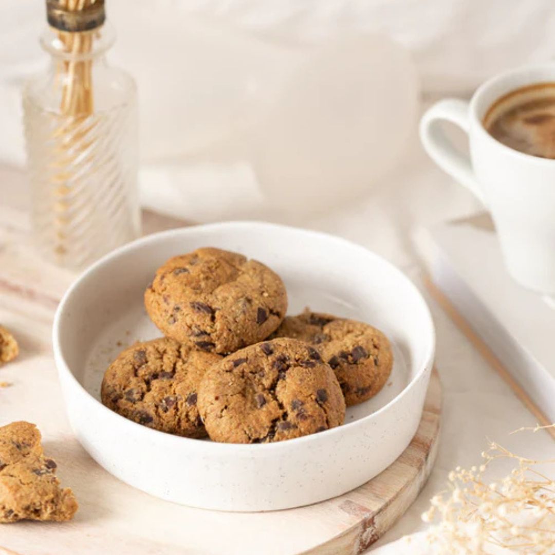Dark Choc Chip Ingredients: Oat Flour, Dark Chocolate Chips, Coconut Sugar, Salted Butter, Egg, Flaxseed, Brewer’s Yeast, Vanilla Extract, Raising Agent (500).