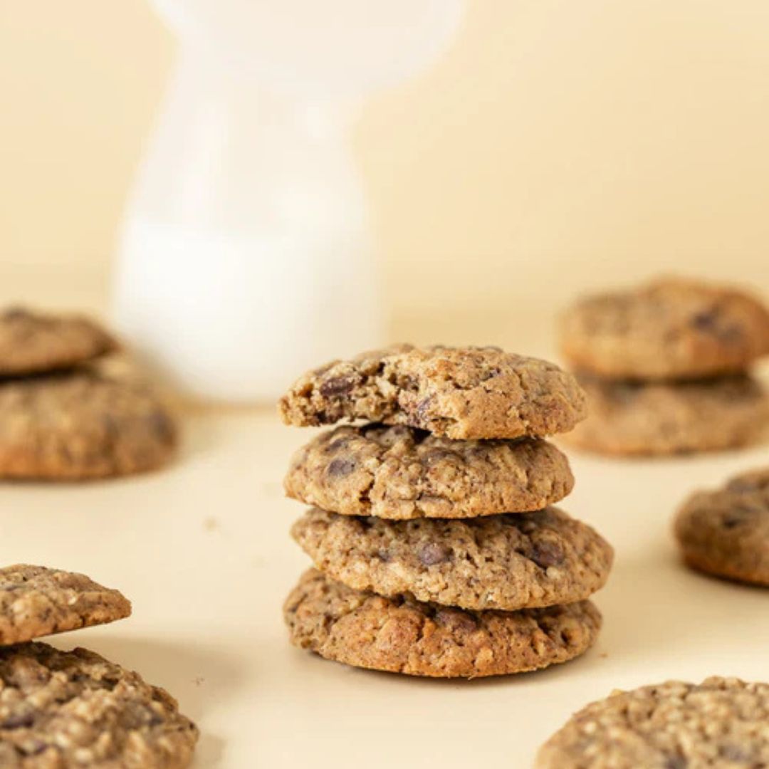 Oaty Milk Choc Chip Ingredients: Milk Chocolate Chips, Brown Sugar, Salted Butter, Wholegrain Oats, Wheat Flour, Egg, Flaxseed, Brewer’s Yeast, Vanilla Extract, Baking Powder.